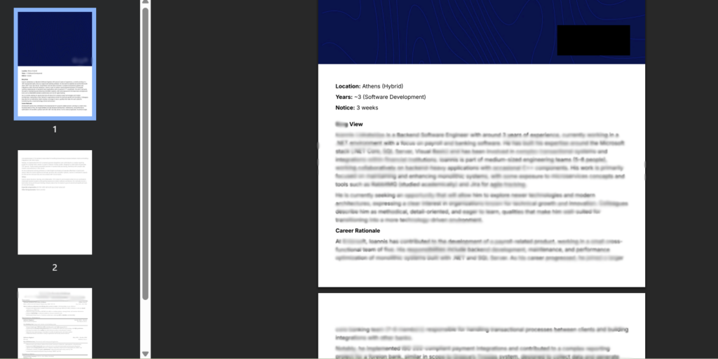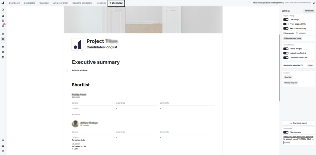 To create a smoother and more professional client experience, it’s helpful to use an AI-powered applicant tracking system where all your candidates are stored and can be presented directly through the platform. Atlas, for example, offers a dedicated feature for candidate presentation called “Client View”, which makes it easy for clients to access, review, and compare candidate profiles.