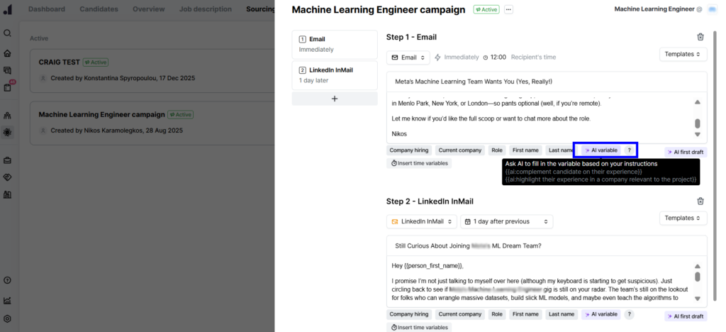 This way, every message feels personal to the candidate, while saving you time and ensuring consistency across all outreach campaigns. As a result, the response rate in US tech recruitment will increase.