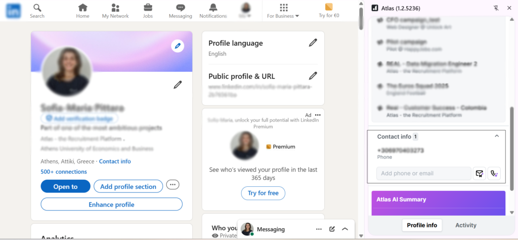 Atlas also helps you identify candidates’ contact information, such as email addresses and phone numbers, enabling you to reach out through multiple channels. Whether you prefer to send a personalized message or call a candidate directly to discuss the position you’re recruiting for, the platform makes it easy to connect.
