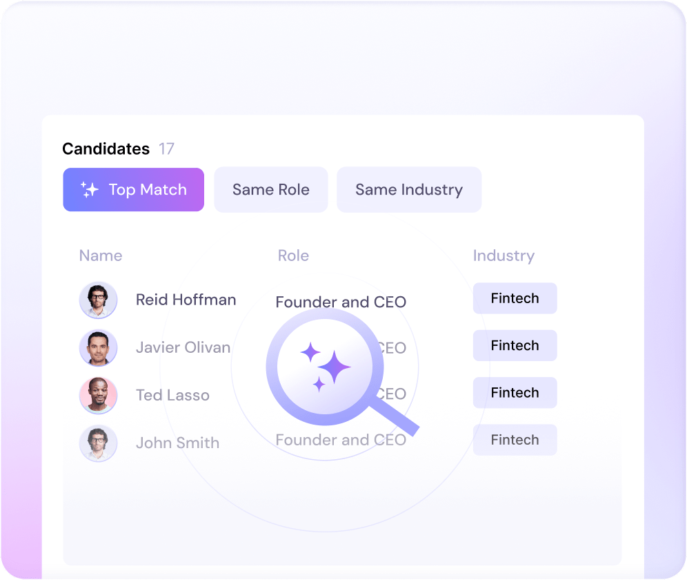 As you discover top-fit candidates, you can quickly transition to their contact details and run outreach campaigns to connect them with your hiring managers. Make more informed placements and impress clients by offering an instant understanding of who each candidate really is, all without external tools to inform your hiring needs.
