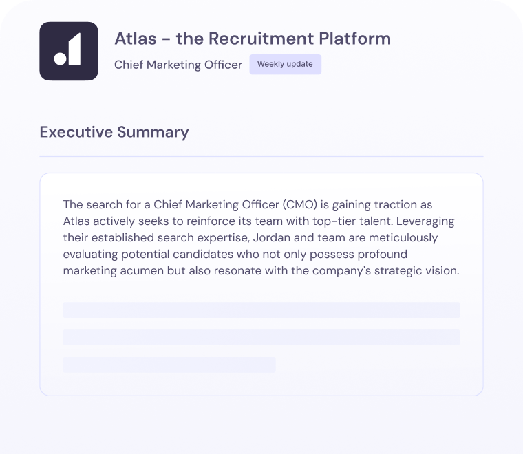 Create eye-catching executive search presentations for your clients. Atlas empowers you to rapidly generate branded executive search reports for your campaigns without having to write any of it yourself.