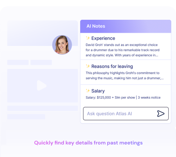 Atlas lets me stay focused on the interview by taking notes for me. It also analyzes candidates against the job description, providing valuable insights to help identify the best fit for the role.