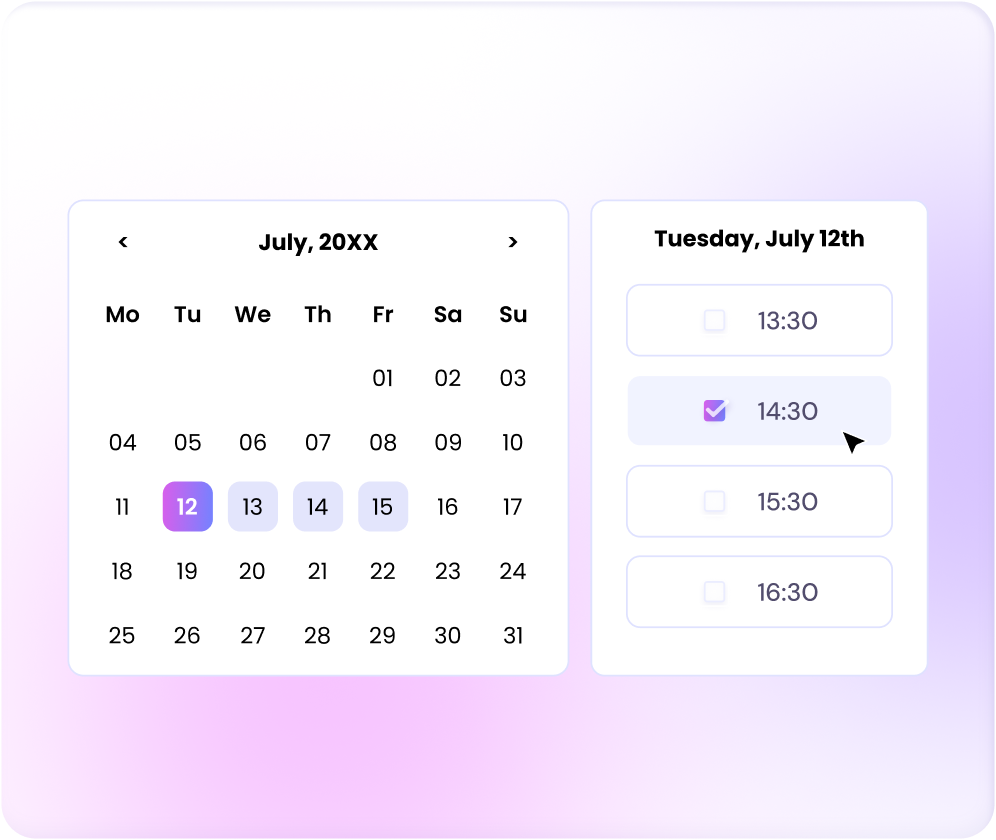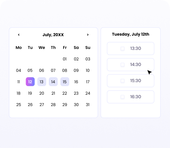 Customise your calendar with your meeting info, availability, and other details to fine-tune your invites. Then, share your custom event link with clients and candidates with just a click.