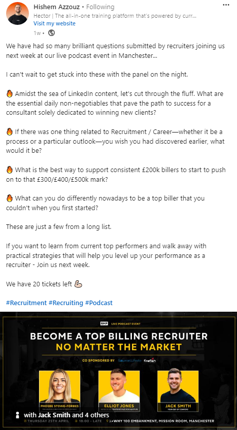 Tune in to the Recruitment Mentorship Masterclass led by top podcaster Hishem Azzouz. Check out an insightful recent episode as he breaks down the process of scaling a recruitment business from £10K a month to £30K a month to £100K months.