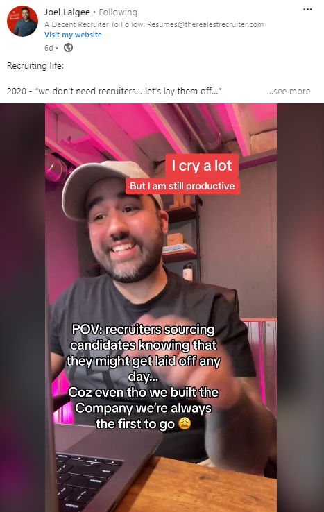 - In 2020, it was “we don’t need recruiters… let’s lay them off…”