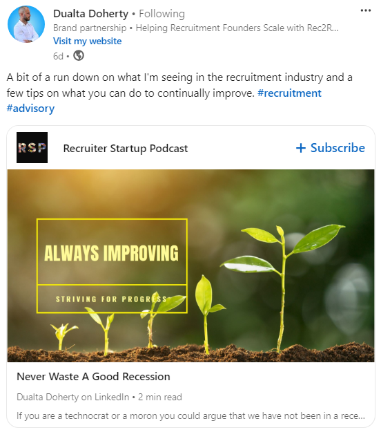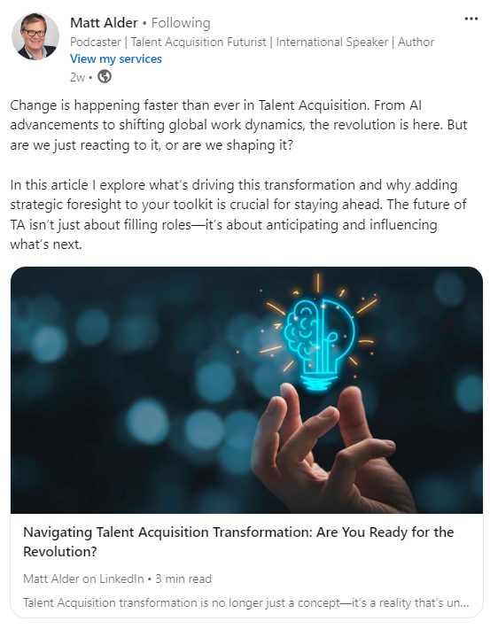 Echoing Dualta’s insights on the evolving recruitment landscape, Matt Alder’s article is good read too.