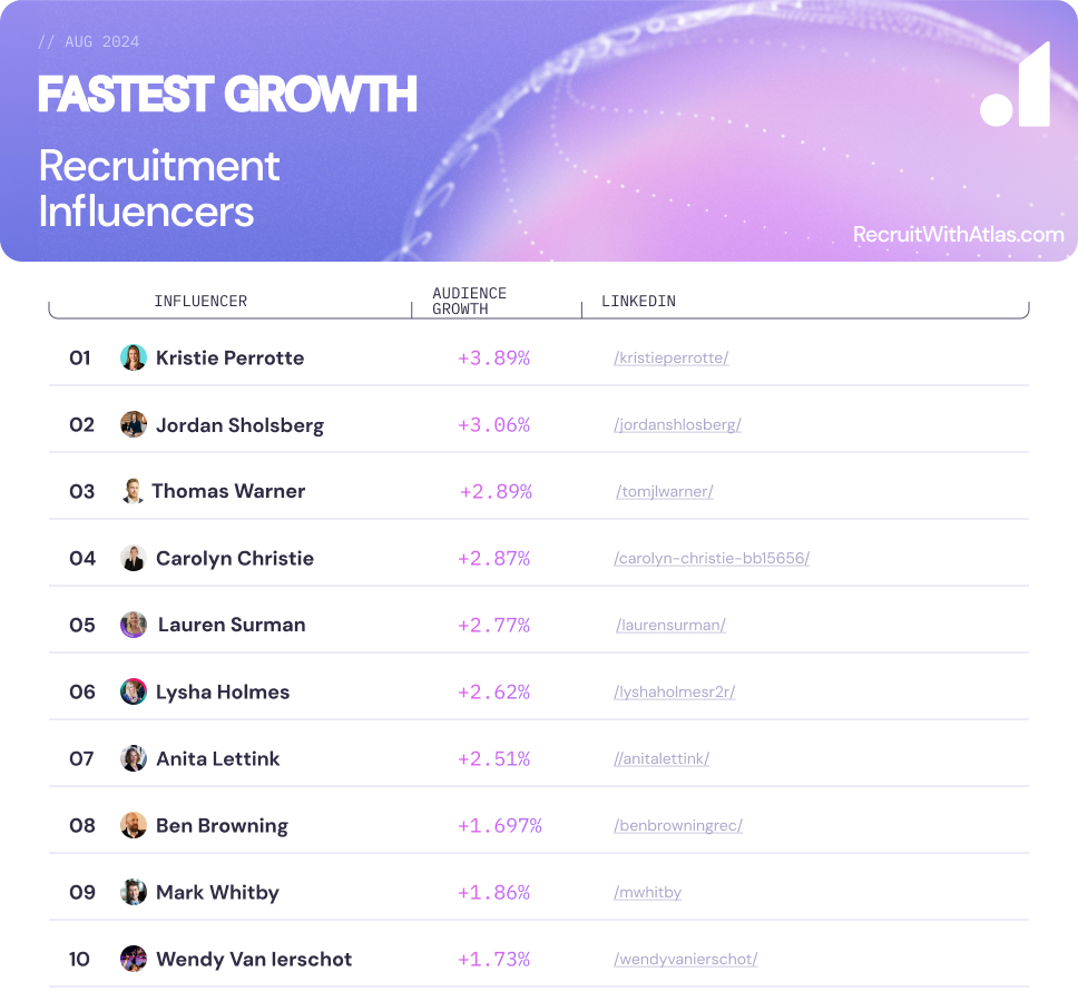We’ve got you! Atlas30 returns, cataloguing the most influential, most followed, most value-adding recruitment influencers for August 2024.