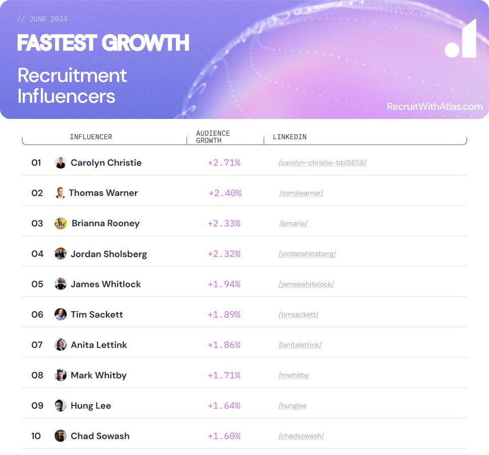 Before we dive in, let’s take a moment to unveil the Atlas Top30 recruitment influencers for July.