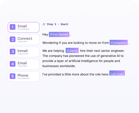 If a candidate responds to your outreach via either email or Linkedin, the platform will sync that message, understand the candidate’s intent and automatically move them through the pipeline based on the answer.